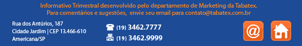Você está recebendo este email porque se cadastrou ou tem relacionamento com a Tabatex Comércio e Representações Têxteis através de seus Representantes Comerciais e do email tabatex@tabatex.com.br. Se você não deseja mais receber nossos e-mails, cancele sua inscrição neste link